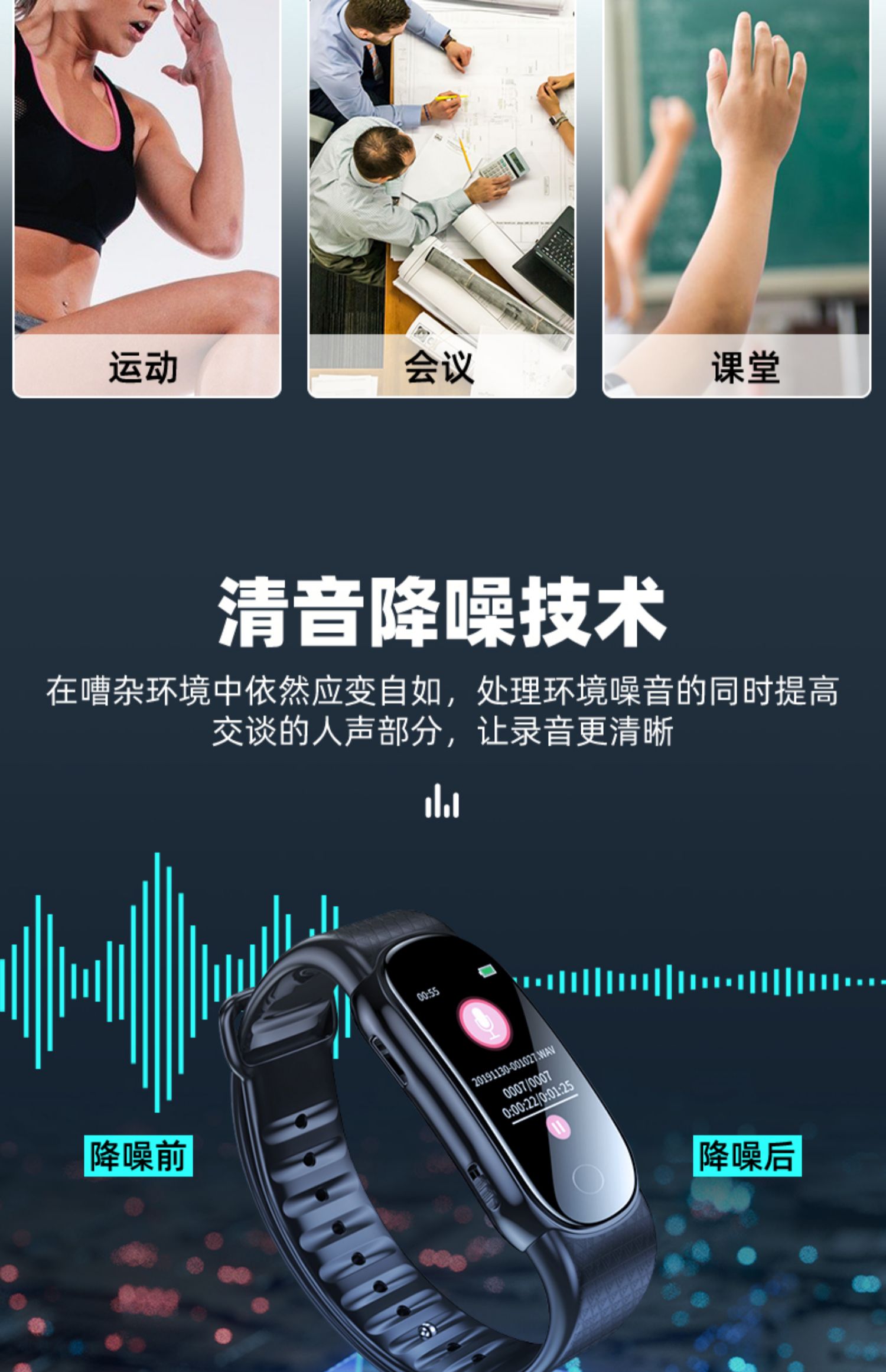新科录音笔专业高清降噪大容量手环式超长待机学生上课用会议智能声控录音器可以转文字律师专用录音设备